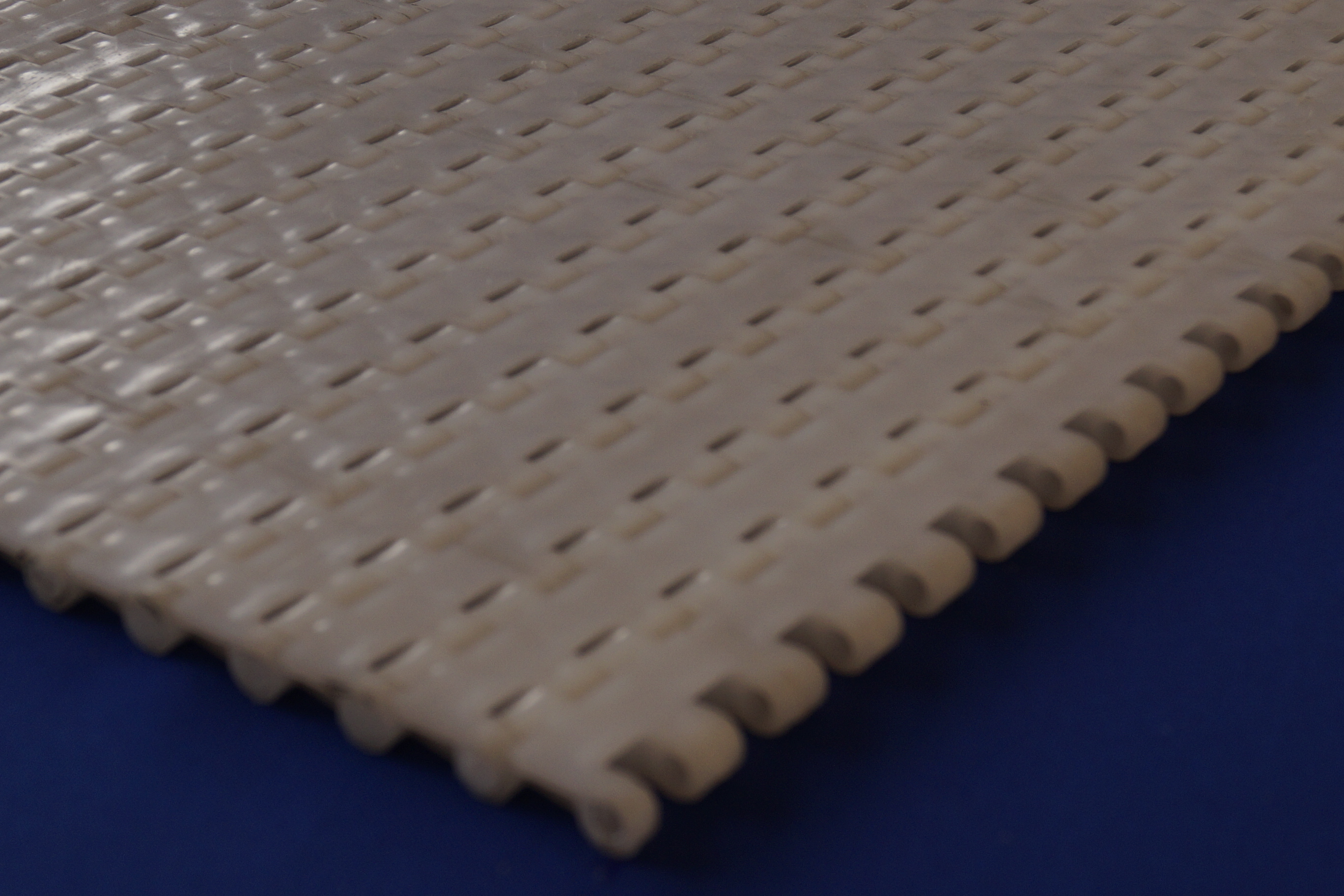 Banda plástica modular serie PBM 19/0 paso 19 mm y 0\% de superficie abierta. Puede ser inyectada en polipropileno, polietileno, acetal y nylon.