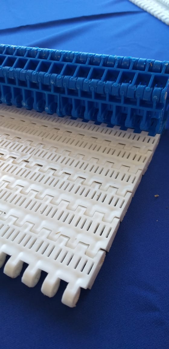 Banda plástica modular serie PBM 25/19 paso 25 mm con 19\% de superficie abierta. Puede ser inyectada en variados colores y en materiales como polipropileno, polietileno, acetal y nylon.