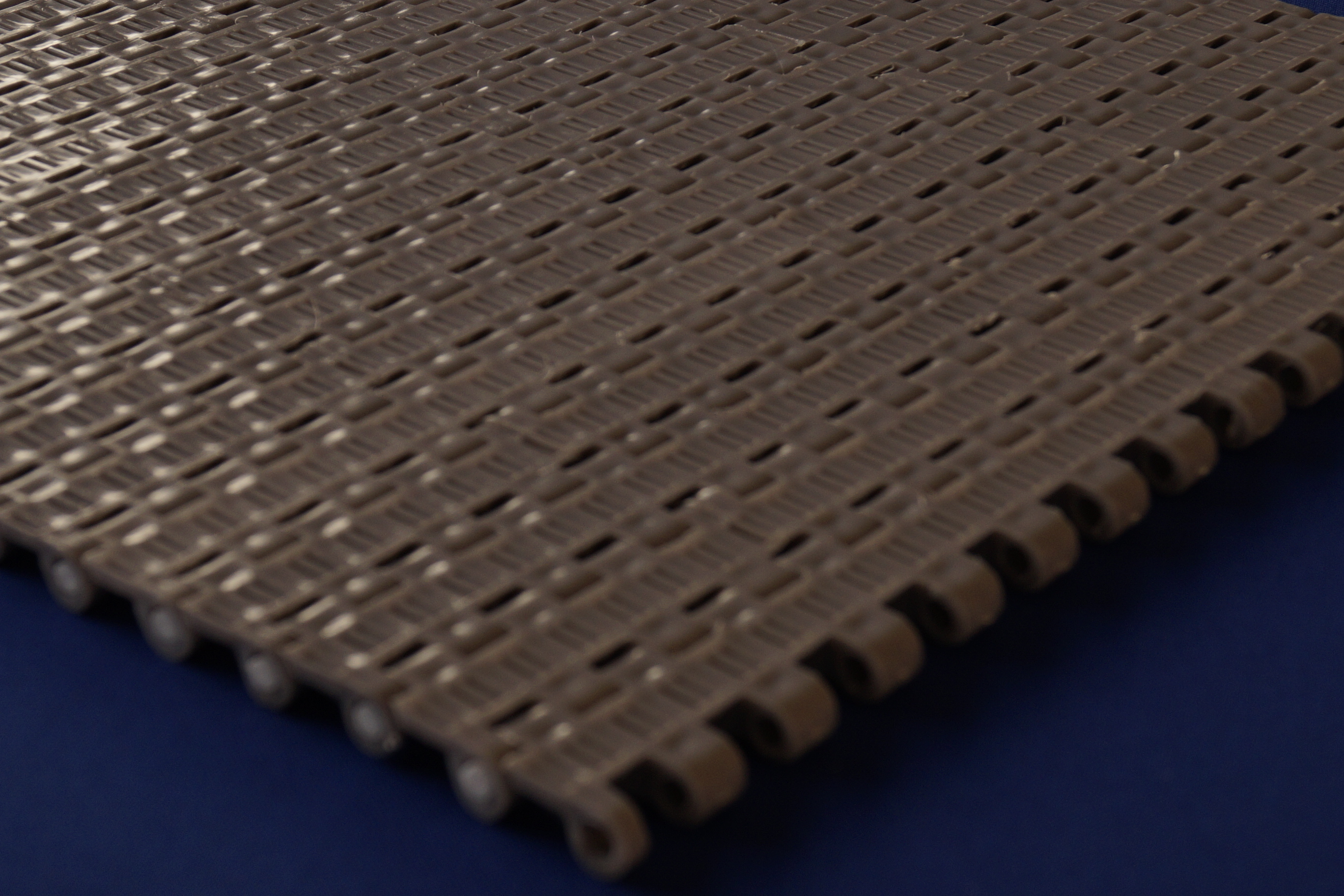 Banda plástica modular serie PBM 19/15  paso 19 mm con 15\% de superficie abierta.  Puede ser inyectada en polipropileno, polietileno, acetal y nylon y en diferentes colores.